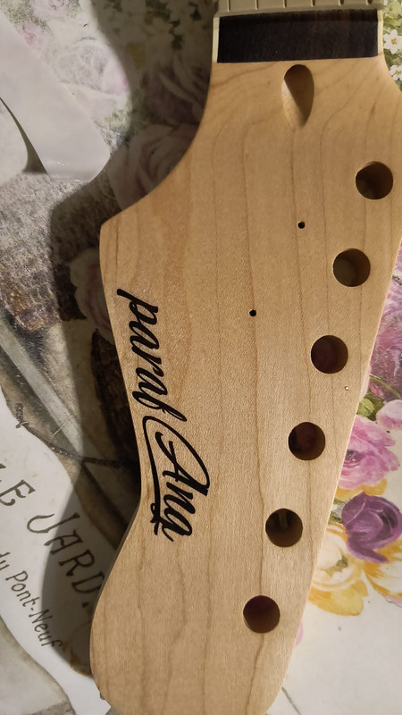 Ho certcato il modello online della paletta della JazzMaster, ma ho scoperto di non avere abbastanza legno sulla paletta originale, e quindi ho cambiato al volo, disegnando e poi tagliando (a mano) una forma adatta.