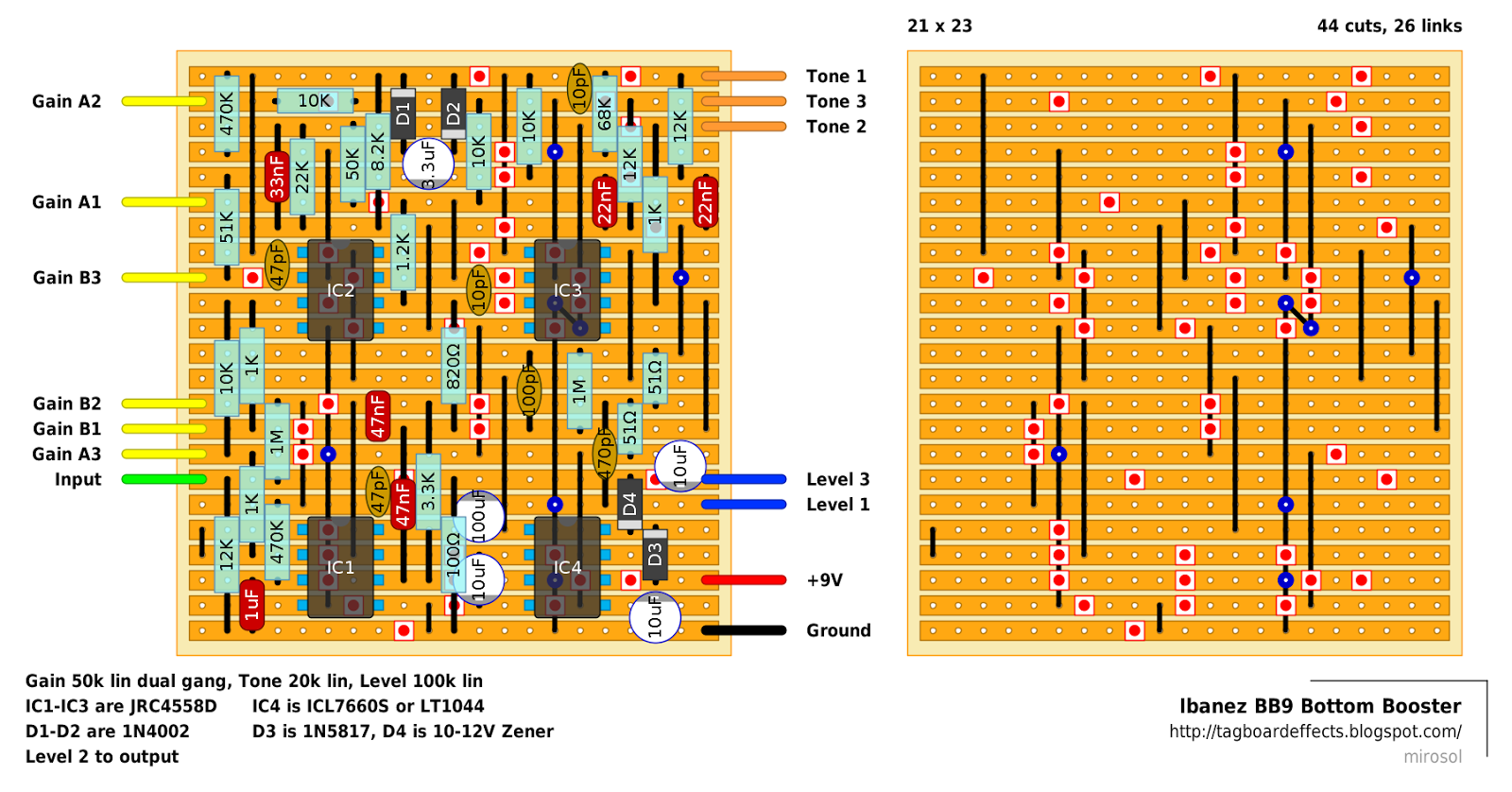 Allego il link allo schema del TC Electronics Spark Booster e dell'Ibanez Bottom Booster BB9